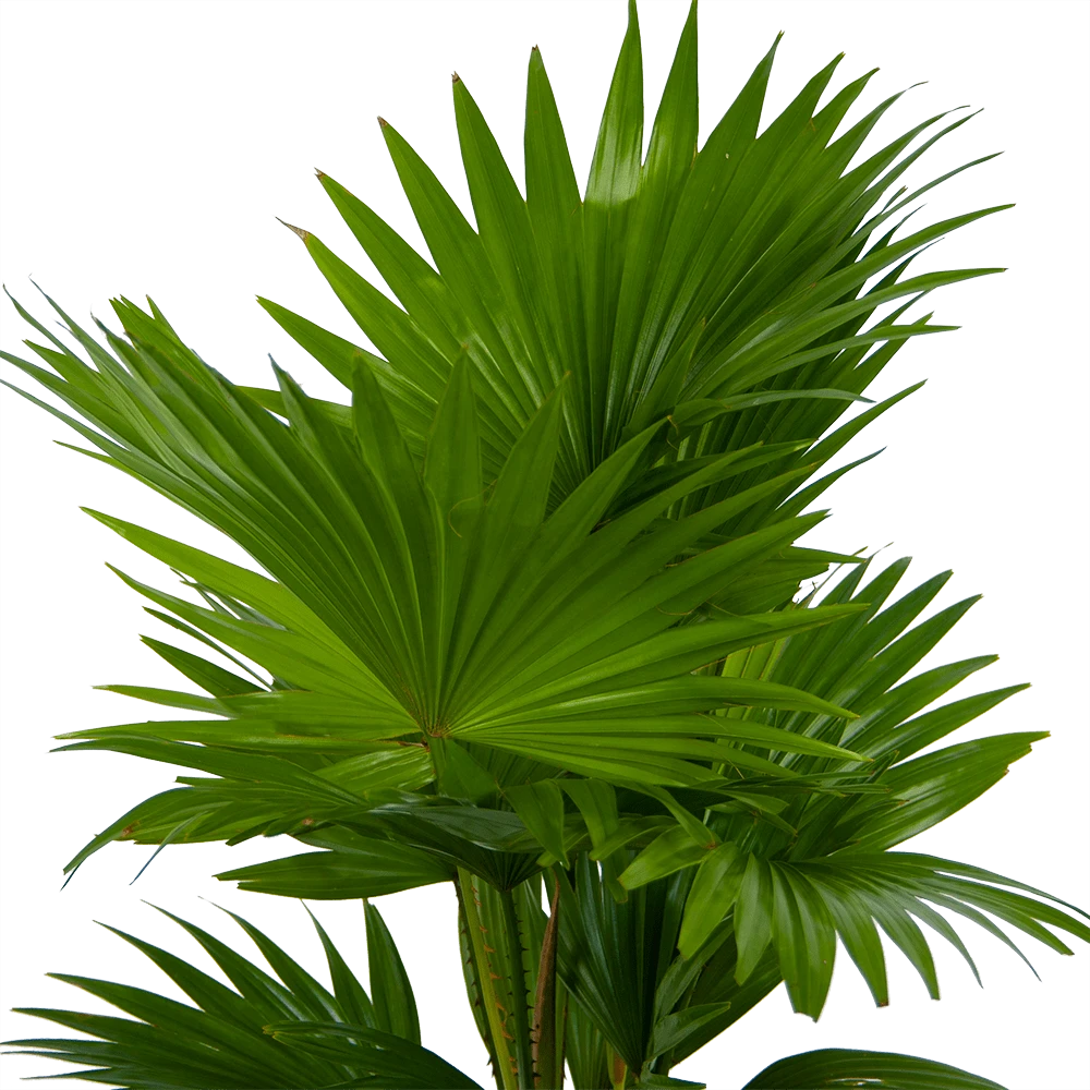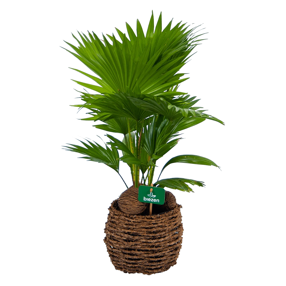 Livistona Rotundifolia In Gevlochten Caryota Pot – Chinese Schermpalm – P19 H50 – Kamerplant
